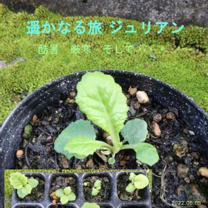 種蒔き 何にも出ないこと三度 そして やっと芽が出ました プリムラ ジュリアン or ポリアンサ ?? ときどき雑草を育ててることがあり 不安になる この本葉のゲジゲジは ジュリアンでしょう 寒暖風雨病害虫を乗り越えて 我々は出会えるのだろうか 遥かなる旅のスタートです ジャーン!