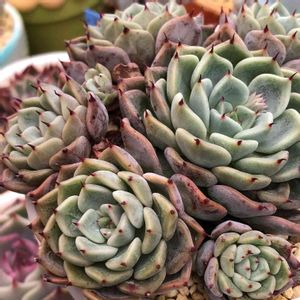 おはようございます😃 ロメオ×沙羅姫牡丹✨✨ ロメオ感がまったくない子ですが、よく増えて3号鉢いっぱいに💕 左下に見えてるのは🍓🥛👑💗