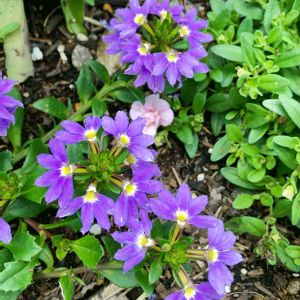 今日も寒色系のお花♬ 咲き方が面白いお花です。 綺麗に丸を描いてます♬
