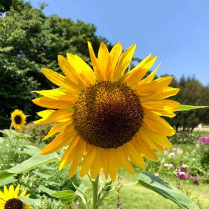 ダリアでしょうか? 先週、青空の下 元気に咲いてました😊