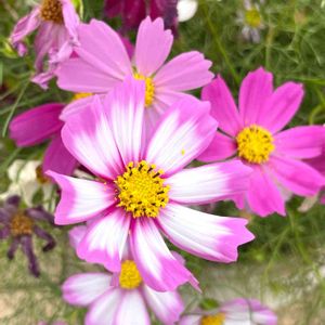 花壇にたくさんのコスモス🌸✨ 真ん中の子の色合いが気に入りました💗
