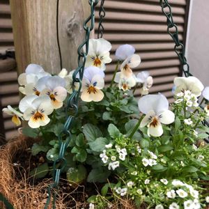 手つきバスケットで こんなん作りました〜🤗 No.2 ・ビオラ(カルフォルニアコレクション) オレンジ 1株 アイボリーオレンジ 1株 ・べっぴんビオラ 2株 ・イケメンパンジー 2株 ・チッカーベリー 1株 ・スーパーアリッサム フロスティーナイト 2株 ・安アリッサム 2株 ・イレシネ パープルレディ 1株 ・プラティーナ 2/1株 ・初雪カズラ ウチの子 ・へデラ ウチの子 バスケットって言っても 取っ手が見えないくらい モ〰️リモリっに入ってると言うか〜⁉️ てかっ バスケットが小さかったわ〜💦 秋は実ものが映えるわ😍✨
