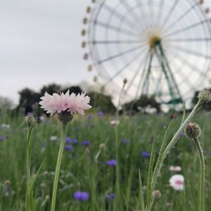 国営ひたち海浜公園。 ヤグルマギクと観覧車
