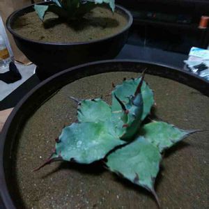Agave ferox “logancalhon”の子株🌵 なんか葉っぱが波波になるフェロックスらしいけど、それが見られるのはなんねんごやら😅