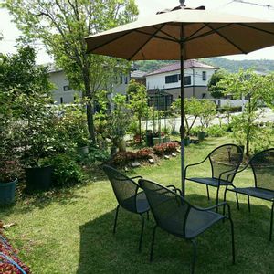 日本芝 庭にサニーレタスやサンチュも植えてます。 5/1なんじゃもんじゃの花はまだです