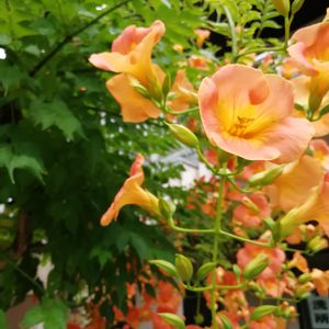 甲斐善光寺のお庭の ノウゼンカズラ 元気もらいますオレンジ色
