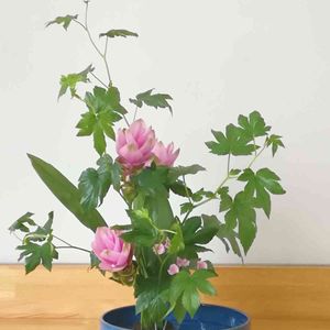 先月のお稽古にクルクマ、キイチゴがきました🌿 クルクマは葉も使えるのでいいですね💚 キイチゴの新芽は光沢があって💛
