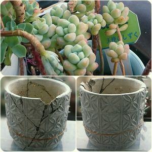 つぶつぶの日 参加させて下さーい♪ チョー久しぶりの参加(///ω///)♪ 宜しくですぅ~~ 天使のしずく。って本当は違う形? ウチはつぶつぶですよぉ! それとーこの鉢物! これがヒロシのやる気がなくなる原因だった〰 可愛くて初めて買った鉢なのに、この前の爆風で 棚ごと全部倒れてグッチャグチャ💧 もーへこむ😞💦 中身のハオルシアだけ無傷。ラッキー。 割れた破片集めて、やっとボンドで付けました。 まだ破片足りないけど、暫定の完成! もぅ右手の指がボンド付いてカッチカチ(笑) これで何とか使えるかな? でも割れたくなかったよぉー くぅやしぃーーー!!!