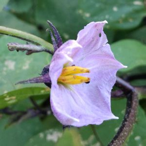 ①② ナスの花と実 ③④ ピーマンの花と実 ⑤ スイカの花 ナスの花もピーマンの花も下向きに咲いていたので、ちょっと上を向いてもらいました😵