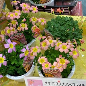 こんばんは\(⌒日⌒)/ ショッピングセンターイオン内 花屋さんで❗❗❗ obtusa 発見ハッヶ───(`・ω『+』───ン。 スプリングスマイルという可愛いお名前^^* Oxalis obtusa Damask Rose Oxalis obtusa Large Form Oxalis obtusa Flame っぽい子が並んでいました。 4号鉢くらいですが、1球植え付けた立派な苗でしたよ~~~。