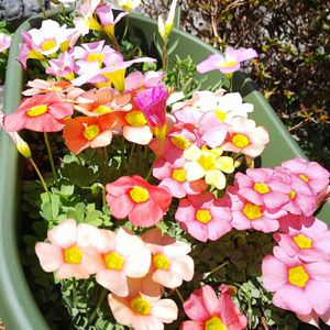 こんにちはヽ(^0^)ノ 暖かい日になり、オキザリスも咲いてきました^^* Oxalis obtusa Moon pales 愛らしいお花です 中央から、黄色、白、ピンク 色の割合でも、可愛くなるか、大人っぽくなるか変わりますよね。 このオキザリスは、可愛い割合^^*。 今からは、オキザリスの中でも 花色が豊富で、次から次に花を咲かせる オブツーサの季節です。 種類にもよりますが、4月中旬くらいまで 楽しめます。 今年は、ホームセンターでも、何種類かのオブツーサが販売されていますね~。 1苗あれば、球根が沢山増えますので、 来年は、もっと沢山咲きますよ~。