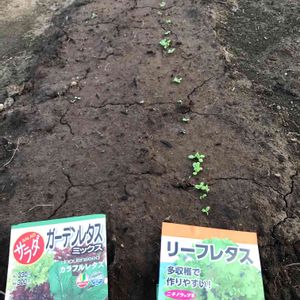 おはようございます😃 一週間まえに種を蒔いたリーフレタスとガーデンレタスが芽がでたよ🌱 暑かったから朝夕の水あげが大変だったけど発芽して嬉しい😃🌱😂