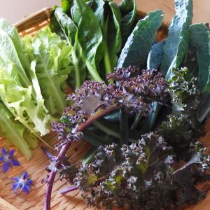 あちーー!!! 7時代から外は汗ダラダラ💧 もう今日梅雨明けでいいんじゃん?💦 長雨で中々収穫出来なかったので、葉物野菜をたっぷり採ってきたよ✨ んー 色合いが素敵😆💕 カーボロネロ以外は生で食べられるけど、カーボロネロは固い黒キャベツなのでパリパリに焼くとポテトチップスならぬキャベツチップスみたいでおいしいよ😄✨