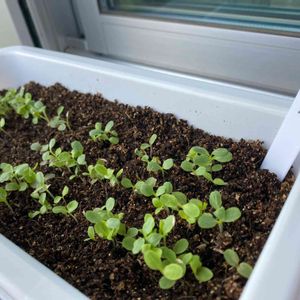 candoで買ったガーデンレタスのセット! 6粒種植えたけど、1つしか出てこんかった!種を深く植えすぎたのか、日照が足りないのか…😌