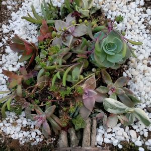 こんにちは☀️ 暑いですね( *¯ㅿ¯*)フゥ💦 毎月5日は群生の日 参加させて頂きます❀.(*´▽`*)❀. 葉刺しの子をギュッ⊂('-'*⊂ ))って 群生風に🤭 ピンクレディー ピンク🩷では無いですが🤣 実物の方が美しい✨ ヒアリナhyb エッジがうっすらピンク 可愛いよ♡ 天気が良いですが 暑いので水分補給、熱中症 気をつけましょうね💕︎