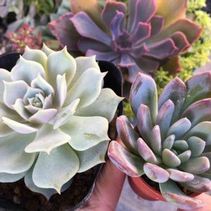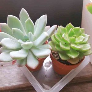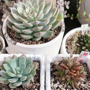 昨日、仕事帰りに園芸店で狩ってきた子たちです。 すごく小さな子ですが、とても綺麗で連れて帰って来ました😊 ブルーアップル🍎、エメラルドリップ、スノーキャンディ🍬、レディジア😄 大きくなるように、お世話します😊