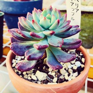 【エケベリア属 ブルーアップル】 Echeveria blueapple (クリッシーNライアン× プロリフィカの交配種?) 【エケベリア属 クリッシーNライアン】? Echeveria 'Chrissy n Ryan' (プロリフィカ×ルンデリーの交配種) いつも1寸苗で売られている こちらの名無しの多肉ですが、 一昨日訪れたHCでは、たまたま 【ブルーアップル】と札付きで 売られていました ヤット ナマエガ ワカッタヨ 🍏 GSの皆さんのブルーアップルと、 少し掛け離れているような 気がしなくとも? (*‘ω‘ *) 取り敢えずここは札を信じて🏷️ 🍏追記🍏 「【クリッシーNライアン】の流通名が【ブルーアップル】」 の記載を発見 他には 「【グリーンアップル】はクリッシーNライアン×プロリフィカの交配種」 の記載も発見 ふたつは交配式が違うので 同じか否か真相は分かりませんが、 ご紹介まで ( ꈍᴗꈍ)
