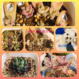 4/16にお迎えした初恋からの葉挿し 5/4に胴切りしたブルーアップルの葉刺し 真ん中の母子大の葉は4月上旬に頂いた葉挿し そして我が家の愛犬♡1歳になりましてん☺︎ 発芽発根100パーセント凄いԅ(≖‿≖ԅ) 名無しの葉挿しは親株もおっきかったから成長も早い!!