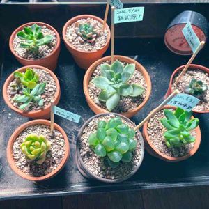 4月の下旬から我が家に仲間入りした子たちのお披露目✨ ↖️パープルパールフォンニュルンベルグ 以前、里親募集のときに「パープル」をうっかり見逃していて「バカバカ!私のバカ~!」って思っていたんです😅 ↗️ホワイトライン GSで見かけて気になっていた子。デリケートそうな子なんで、上手く育てられるか自信がなくて手を出せずにいたんです💦 ⬅️ジョアンダニエル この子も1年目から気になっていた子。何故かその後まったく出会えずにいたんです🙄 以上は、あけちゃんさんから「いる?」ってお声を掛けていただいて「欲しい!」と即答。どれも立派な苗で「こんなのホンマにもらって良いのかなぁ」と思ったけど、お言葉に甘えていただいちゃいました🤭 あけちゃんさん、ありがとうございます🤗🌱 失敗するかも知れんけど、大切に育てます💕 ➡️ブルーアップル 七福神の子を里親募集して、その中の一つをみけさんに里親になってもらったんですけど、物々交換でこんな可愛い子を送ってもらいました🎶めちゃくちゃ大事に育てられたんだろうなぁと思えるほどのしっかりした葉挿しっ子で、これはきっと断腸の思いで送り出してくれたに違いない😱 みけさん、手塩にかけた子を送ってくれてありがとうございます🤗🌱 失敗するかもしれないけど、大切に育てます❤️ ↘️編み編みのいちご🍓ちゃん リトセアさんのプレ企画で当たりました🎯 赤が欲しかったのでめっちゃ嬉しい🤩 リトセアさん、手間が掛かる編み編み🍓を当ててくれてありがとうございます🤗🌱可愛い過ぎる~(( *´ `)´^`*))スリスリ... これって多肉に使わず、他の事に使ってもええですか?🤭大切に使わせてもらいま~す🎶 本当にありがとうございました😆🙌 これからも宜しくお願いしま~す✨