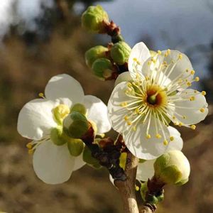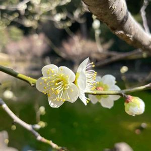 白梅(月影) また梅の花?って言われそうですが好きなんです。青軸性の白梅。他の梅よりやや遅めに開花する清楚な花です。 綾瀬市 城山公園(日本庭園)にて