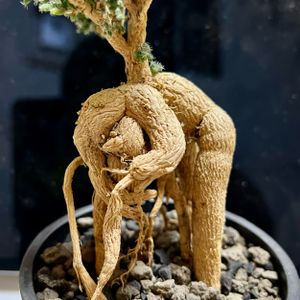 「アフリカ盆栽」とも言われる 姫紅子松。 屈み込んだ人の背中から ニョキっと木が生えてきたような 何とも奇妙な姿に 思わず目を奪われてしまいます😳