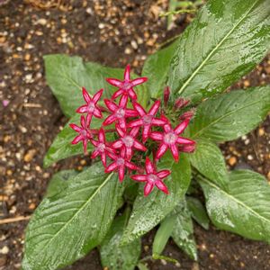 庭に花が咲きそうな葉っぱを発見して花壇に移したら咲きました!ペンタスかな? 去年プランターからこぼれた種子から咲いた様です。沢山花を咲かせてくれるといいな。