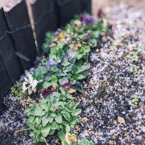 おはようございます❄ 暑さ寒さも彼岸まで、と言うじゃないですかぁ!! なんですか、雪が深々と降ってます🥶 ベロニカオックスフォードブルー お庭完成したら、この子をわさーっとしたい!とちっさい苗をコンテナに植えたとこです💙