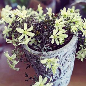 おはようございます☀ 今日は暖かいけど風が強いらしい🍃 まだ植物は外には出せません 私の初クレマチス💚室内育ちのペトリエイ💚まんかーーい! この鉢は今季限りかなぁ🤔 ここからが、ビギナー頑張らないと😅