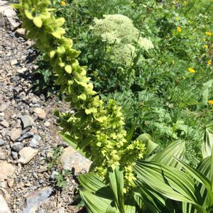 🇯🇵 北アルプス西穂高岳で出会えた『コバイケイソウ』です。 コバイケイソウ(小梅蕙草)は、6月から8月に咲くユリ科の花。亜高山や高山の湿った草地や湿原に生息する多年草です。 和名の由来は、花が「梅」に、葉が中国産の「蕙蘭」に似ており、梅蕙草(バイケイソウ)より小振りなことからきています。 根茎にアルカロイドを含み、有毒です。 花を咲かせるに十分な養分を必要とし、数年に一度しか咲かない。 属名の Veratrum はラテン語の「verator(予言者)」からきている。この属の植物の根にくしゃみを起こさせる薬効があり、北ヨーロッパに「くしゃみをしてから言うことは真実」ということわざがあるため。種小名の stamineum は「雄しべの」という意味である。