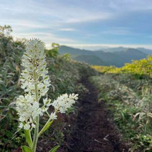 鳥海山の山道。 たぶんコバイケイソウ。 登るのに精一杯でアングルをチェックする余裕もありませんでした。💦