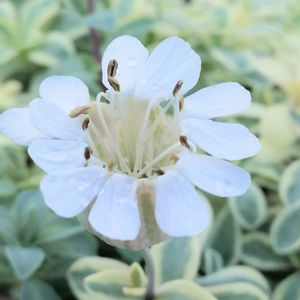 シレネ・ユニフローラ 挿し芽で育てた地植えのシレネ 寒い冬を越し大株になりました 開花が始まり蕾もたくさん 斑入の葉もお気に入りです