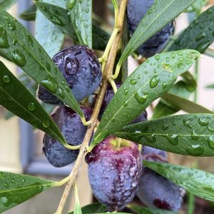 . 2025/10/18 ↓ 3m以上ある 我が家のオリーブの木 毎年10kg前後の オリーブの実を実らせてくれます 今年は9月初め頃に 3kg程の 1回目の収穫をしたので いつもより大きな実に 育っています 巨峰より大きいかも?? そろそろ2回目の収穫を したいなぁ⋅⃘⋅⃘͜ 1回目の収穫分は そろそろアクが抜けたので 塩漬けと、甘納豆作ろうかな𓀠 . .