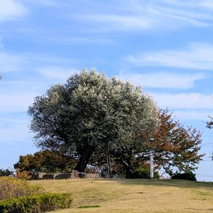 今日の散歩🚶 江戸川区なぎさ公園⛲️ 久しぶりに「ブイロクの木」を 見てきました🌳 2021年に移植された時の 少し弱々しい姿から随分立派 になっていました💪 樹齢300年といわれるオリーブの木 です🌳 天気も良く青空に映えてます👀 オリーブの実も成っていて👌