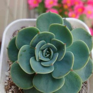 青星美人さん💕💕 この前の多肉ツアー お肉園さんでお迎えした子 先っちょピンクちゃんで可愛い〜 (๑•ᴗ•๑)♡ 多肉ラボ©︎メンバーさんへ みどりのまとめに桜色カリシア、爪蓮華、ブロウメアナなど里親募集してるので よかったら見て下さいね🤗