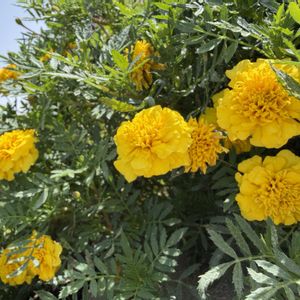 ♡ マリーゴールド ♡ とっても元気なお花🌼*・ ご近所に咲いてて📷✨ 鮮やかな色でとっても美しくて お陽さまに当たり輝いてました☀️