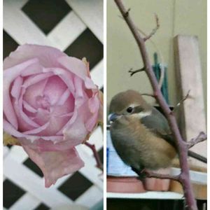 バラ エアリアルが長〜い時間をかけてやっとここまで開きました😅 昨日は、お庭仕事中 可愛い子が遊びに来ました。 モズも私の周りでパタパタ🎵 虫をみつけてはモグモグタイムでしたよ💕🤗