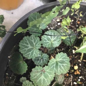 可哀想に😰 寒空の下、ゴミ置場に葉っぱだけが 落ちてました😱 葉っぱもしっかりしてるし、少し ですが土も付いていたので、保護🌱 名前がわからないし、花も咲くのか? このまま、大きくなるのか?全く わかりません。どなたか、 教えてください🤲