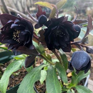 今日はクリスマスローズの即売会に 突入してきた クレオパトラは沢山あったがスルー オーレア系も🤔イマイチ ピエラも欲しかったが無かった… その中で 俺の目をひいたのが👀 小輪ブラックのダブル ( ゚д゚)かなり黒いんですけど… うまくクジ3番引いて 狙った😁このこをゲットしてきた そして あと2つ(〃ω〃)買っちゃった