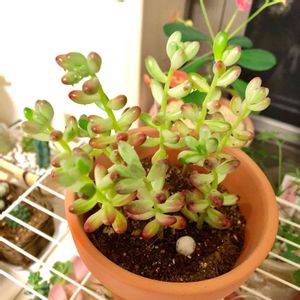 金のなる木が乙女心になりました〜🌱 前投稿の金のなる木をおばあちゃんの家に持っていったら、わたしにお土産〜とルンルンで出てきたおばあちゃん笑 乙女心と札付きなのにサボテンと呼んでました笑🌵 お茶飲みながら観察🍵 上からも横からも可愛さが溢れてる〜💕 ありがとうおばあちゃん😊
