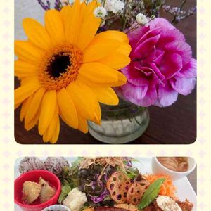 友達とランチへ🍴😋 テーブルに可愛いお花🏵️🌿 お野菜たっぶりでした