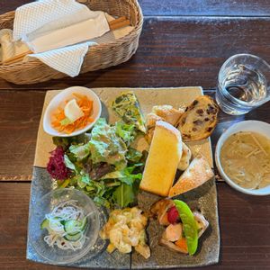 こんにちは 野菜(植物)繋がりという事で、アップ⤴️ 今日は、パン🍞購入を目的で、ひさーしぶりに、ランチ 手作りのパンと、春の野菜たっぷりメニューは、いつもと変わらず、ホントに美味しい😋です。 手作りデザート付きも、また嬉しい☺️ 石垣島の疲れが抜けないので、美味しい野菜を食べようと思い立ち、出かけてきて正解でした❣️ 福岡市東区の、 手作りパンの店 ほのか です。 友人の友人、の店 亡母が元気な頃から、たまに出かけている店です。 出がけに、行ってきます、と仏壇の母に、手を合わせて言ったのですが、今日は、なんだか、一緒に着いてきてる気がします。 初夏のような日差し 木漏れ日が眩しい午後です❣️
