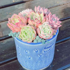 陶芸教室で焼いた鉢に寄せ植え𖡼.𖤣𖥧𖡼.𖤣𖥧⚘ かわい〜😊💕