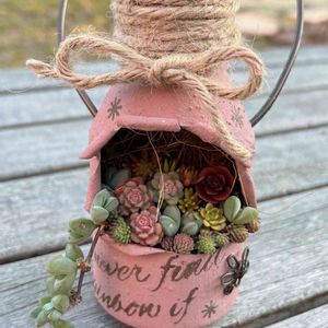もぅ1つ、おか持ちプランターにも寄せ植え𖡼.𖤣𖥧𖡼.𖤣𖥧⚘ セダムのピンク色がなんとも可愛い〜😊💕