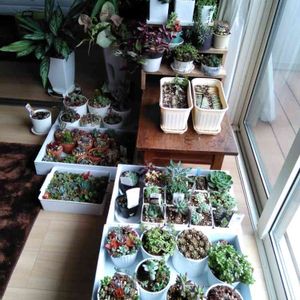 単身赴任の部屋に溢れる鉢…鉢… 明日休暇取得してるし😁 晴天予報だし実家に持ち帰ってチマチマしちゃおうかな❤ 田舎のキレイな空気の外に出したげようかなー