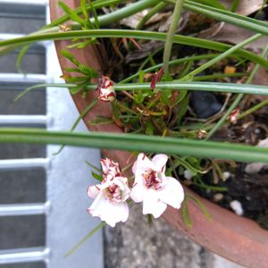 咲いてる💕 中央あたりに球根植えたのだが、端っこに(;´∀`) イチゴのランナー様に伸びた先で葉っぱとお花が開きました😌