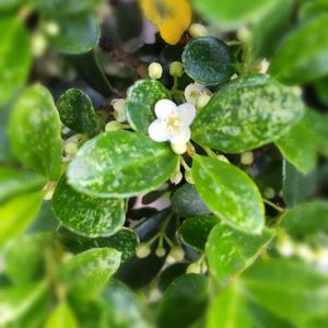 お稽古の帰り道、植え込みの中で咲いていた小さな花。 キンメツゲだと思うのですが、イヌツゲかも。 教えて頂けると嬉しいです❣️