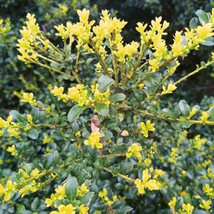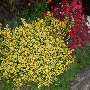 【キンメツゲ】?? 庭に植えてある木💛 25年間植えてあるのに、今年初めてよーく見た😂 調べたら多分キンメツゲっぽい🍀 これは花なのか若葉なのか? とにかく今は樹木全体が黄色で覆われていて可愛いです💛💕💛 (黄色くなる前は、この木邪魔と言っていた私です。反省)