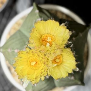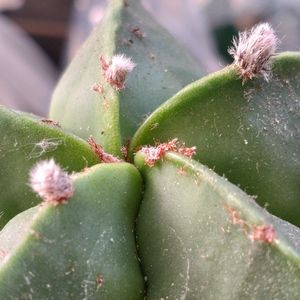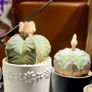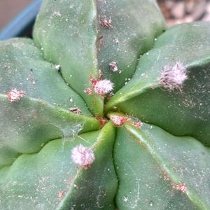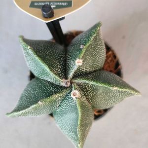 ダイソー産ランポー アストロフィツム 昨夜の仕事帰りに夜な夜な植え替えしました。むちむちでかわいい。そして模様が綺麗です。サッカーボールくらいになるといいです。 真ん中の子、茶色いブツブツが害虫?です