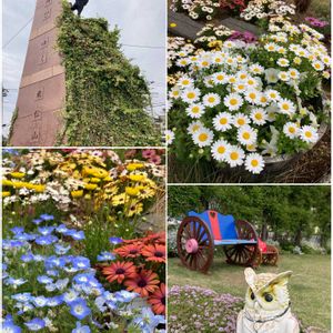 寄り道シリーズ🚙♪ 市の花壇🌷にしてはかなり広いスペースですが、買い物帰りに初めて寄りました😊 「松本町一丁目緑地」という正式名があるようで、樹木もいくつかありました🌲🌳 ②カモミールさん💛🤍 ③デルフィニウムさん💙 ④グラスペディアさんとムルチコーレさん🟡🌼🐞 ⑤ビオラさん💛💜🩷 (4/20撮影)