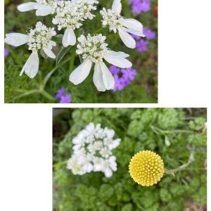 こぼれ種であっちこっちとコラボするオルレア👼 それでもうるさくなくてかわいい グラスペディアは夏を耐えて今年は花数増えてます🙌